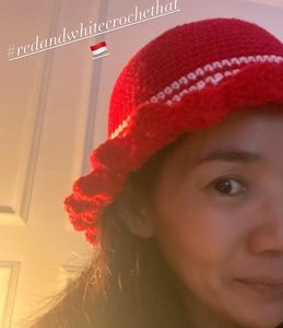 "Red" comfy hat crochet for daily use, Christmas or Indonesia's Independence Day 😊🇮🇩