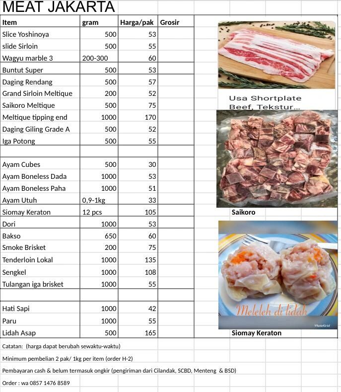 Pemesanan harap dilakukan 2 hari sebelumnya dan harga di atas belum termasuk ongkos kirim